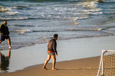 Tel Aviv Israel January 10, 2020 View of unidentified Israeli people having fun on the beach of Tel Aviv during a sunny day in winter