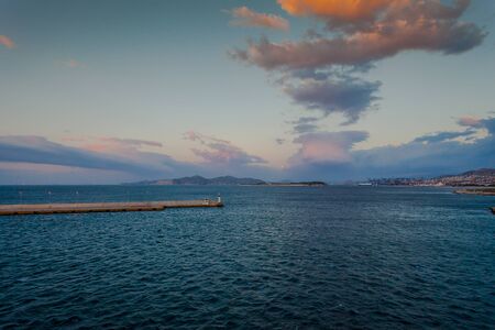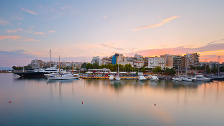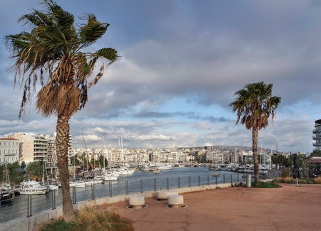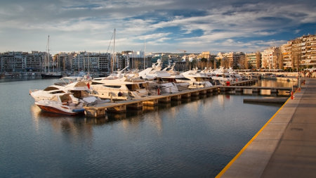 Evening view of Zea Marina in Athens, Greece