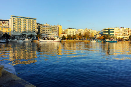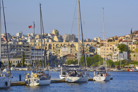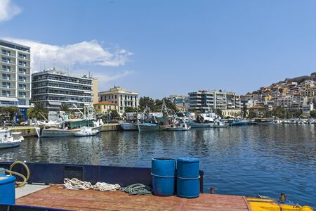 KAVALA, GREECE - JUNE 22, 2019: Fishing boats and yachts at the port of city of Kavala, East Macedonia and Thrace, Greece
