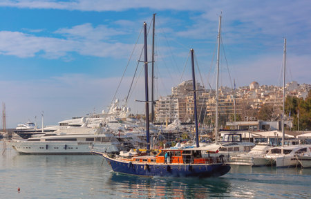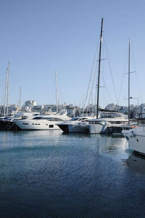 Athens, Greece - January 1, 2019: Yachts and sailboats moored in the port of Athens, Greece