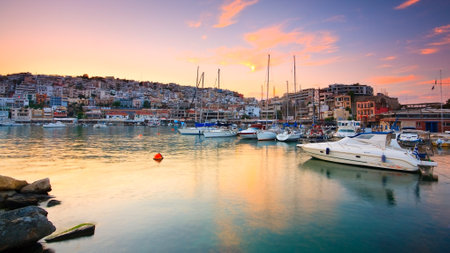 Sunset in Mikrolimano marina in Athens, Greece.