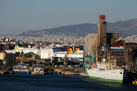 PIRAEUS, GREECE, JANUARY - 2020 - Piraeus port cityscape, athens, greece