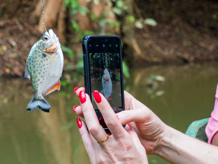 Pictures of small piranha catch from Amazon River, Brazil. Amazon. South America