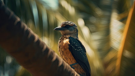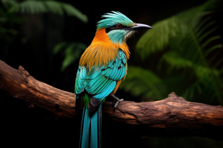Feathered Motmot bird fullbody. Wild tree tail. Generate Ai
