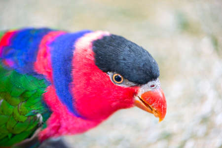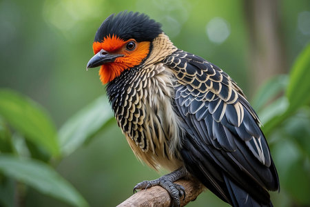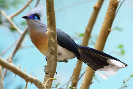 beautiful and colorful bird sitting in the branch with bokeh background.