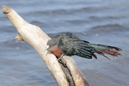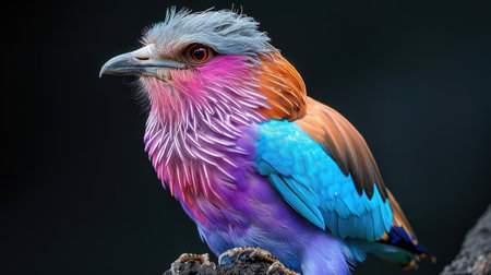 Bird Lilac roller on black background. Lilac Breasted Roller Perched on a Branch.