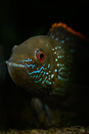 Portrait of a beautiful blue cichlid fish isolated on black background