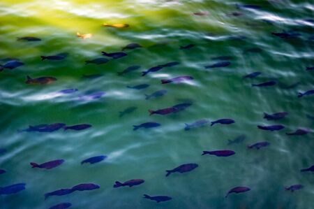 Fish. Fishes. Bank of fish in the sea and fish killed by climate change. The Mediterranean increases in temperature and salinity in all its depth ranges. School of fish.
