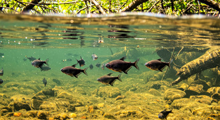Fish swimming in a pond in the Mangrove forest in Thailand