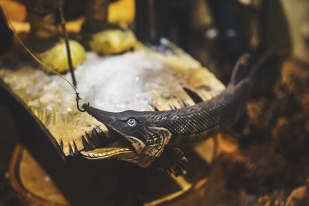 big catfish for cooking on wood block