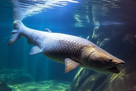 An Arapaima underwater Arapiama gigas fish portrait