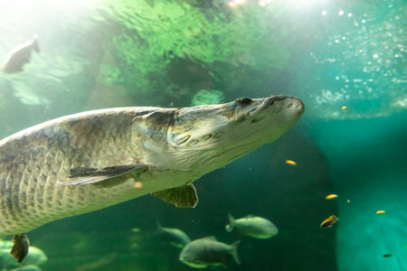 Arapaima (Sudis gigas), also known as the pirarucu. Wildlife animal.