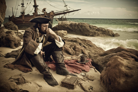 shipwrecked pirate, spending his last days on deserted island, dreaming of escape, created with generative ai