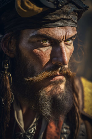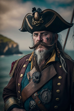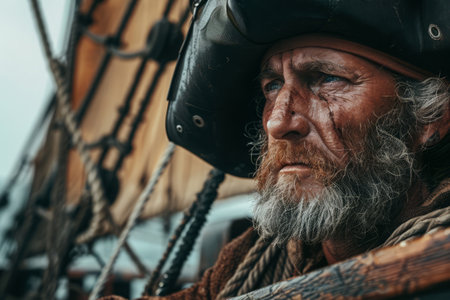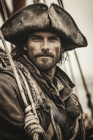 Portrait of a pirate captain at sea