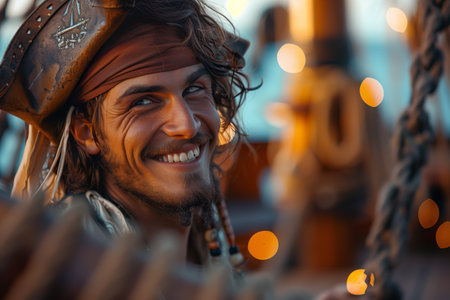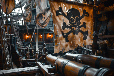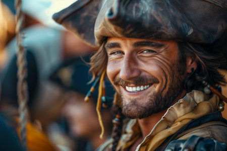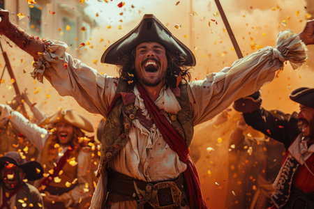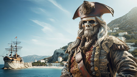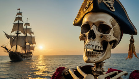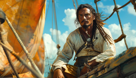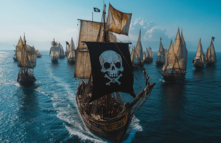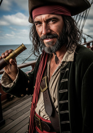 High seas adventure: a daring pirate, captivating piracy, treasure hunt, ship battle, adventure, danger, and the spirit of maritime legends.