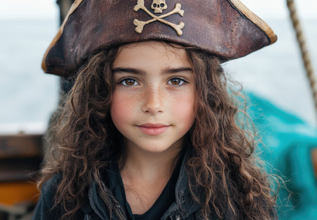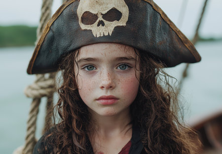 young girl dressed as a pirate with curly hair