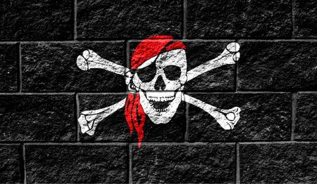 Jolly Roger flag Illustration. Fabric texture flag of Pirates