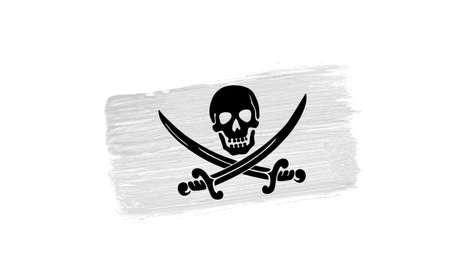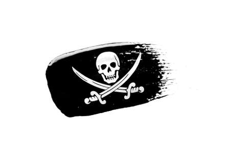brush painted flag of Jolly Roger Pirates white isolated on black background