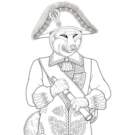 Fox man portrait. Fantasy animal coloring book page for adults