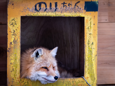 The Japanese Closed one Eye with The Chain on The Box at The Zoo in Japan