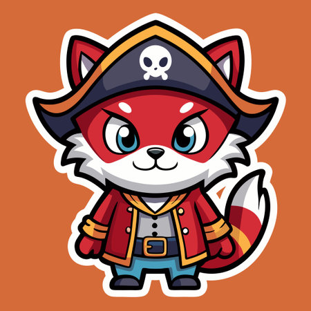 Cute Pirate Cat Mascot Logo Sticker Vector Character with Big Eyes and Cheerful Expression