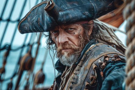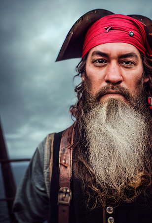 Portrait of a pirate captain at sea
