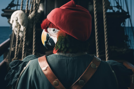 Pirate parrot head. Tropical ship animal. Generate AI