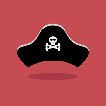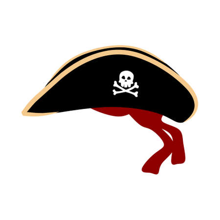 Pirate cocked hat with a skull. Cartoon style. Isolated on a white background. Pirates, hat. Vector illustration