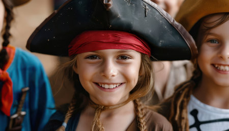 A band of pint-sized pirates embarks on a Halloween adventure! Dressed in swashbuckling attire, these children eagerly collect treats while embodying the spirit of fun and mischief Their joyous laughter and excited grins create lasting memories for families celebrating Halloween AI Generative