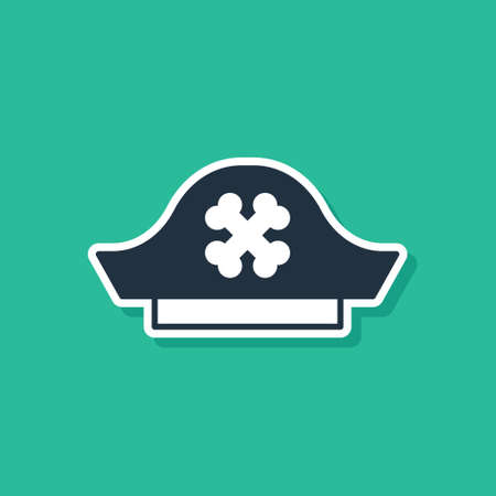 Blue Pirate hat icon isolated on green background. Vector