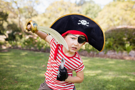 Little boy pretending to be a pirate in the park