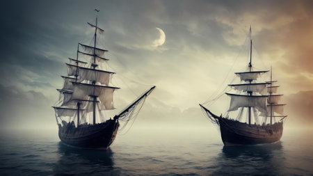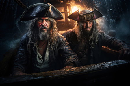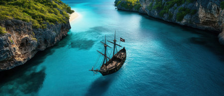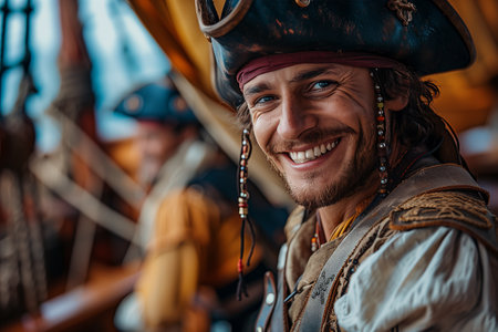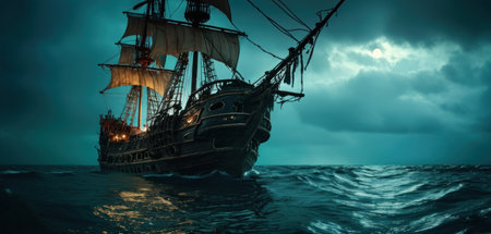 High seas adventure: a daring pirate, captivating piracy, treasure hunt, ship battle, adventure, danger, and the spirit of maritime legends.