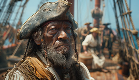 Portrait of a pirate captain at sea