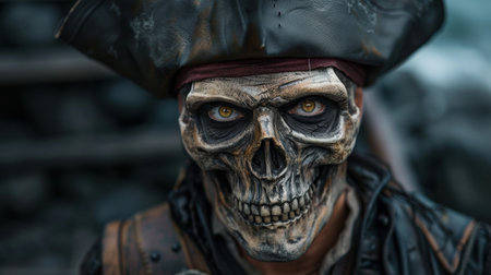 Portrait of a noble brave dead pirate. Zombie pirate. Halloween.