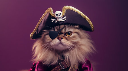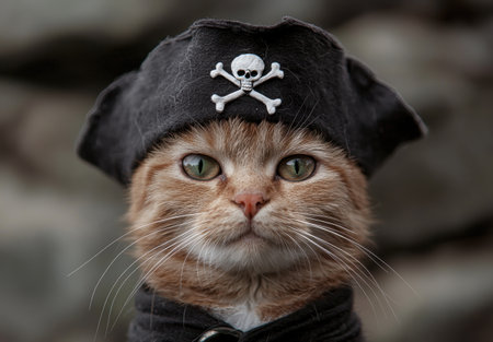 Pirate cat in costume with skull and crossbones hat