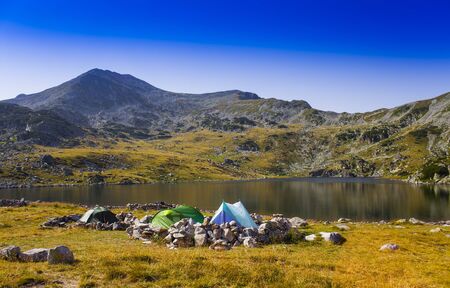 tent camping near Bucura Glacier lake in Retezat mountain, Romania