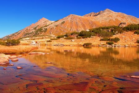 Autumn landscape of Muratovo (Hvoynato) lake at Pirin Mountain, Bulgaria