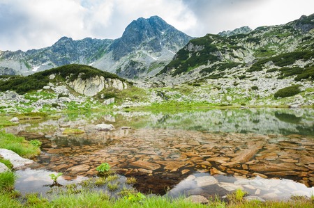 Popovo lake at Bezbog, Bulgaria and mountains reflection at summer.