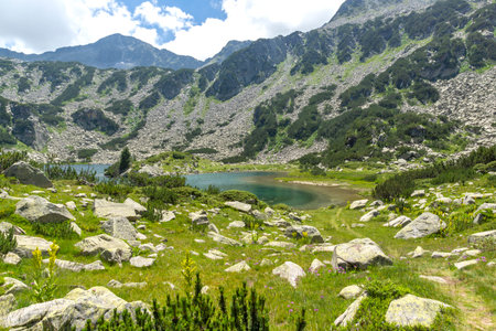 Amazing Summer view of Pirin Mountain around Muratovo Lake, Bulgaria