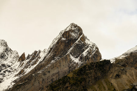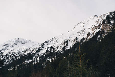 Snowy peak in Canfranc Valley, Pyrenees, Huesca, Aragon, Spain.