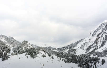 Snowy peaks in Canfranc Valley, Pyrenees, Huesca, Aragon, Spain.