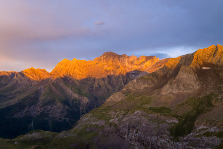 Ordesa National Park mountains and the natural environment at sunset. Ordesa y Monte Perdido National Park is in the heart of the Pyrenees and a protected natural areas in Europe