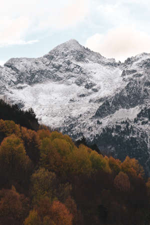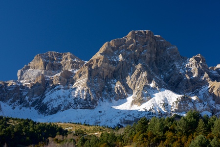 Snowy peak in Tena Valley, Aragon, Huesca, Spain.