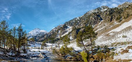 small river in the snowy Pyrenees mountains, near Pont Espagne