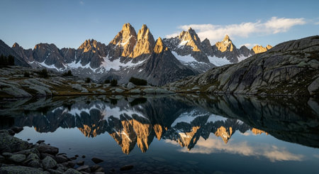 Breathtaking View of Majestic Mountain Range at Dusk with Serene Colors and Tranquil Atmosphere