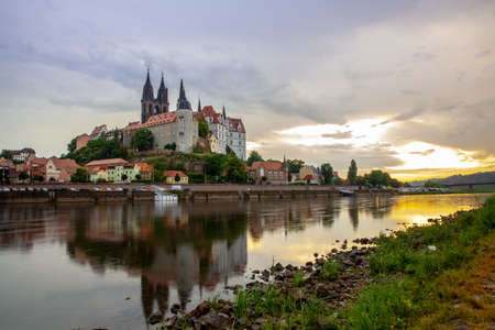Albrechtsburg and Meissen city skyline on the river Elbe at Sunset saxony Germany