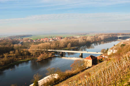 River Elbe - Labe - with moats in town Melnik, Czech republic