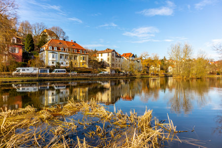 beside the white elster with a view of gera untermhaus, thuringia germany