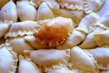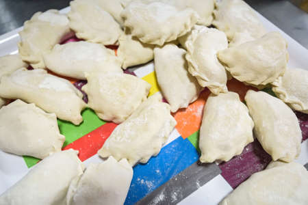 Vareniki (dumplings, pierogi) with cheese before boiling - traditional Ukrainian food