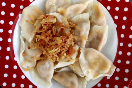 Dumplings with meat seasoned with fried onions